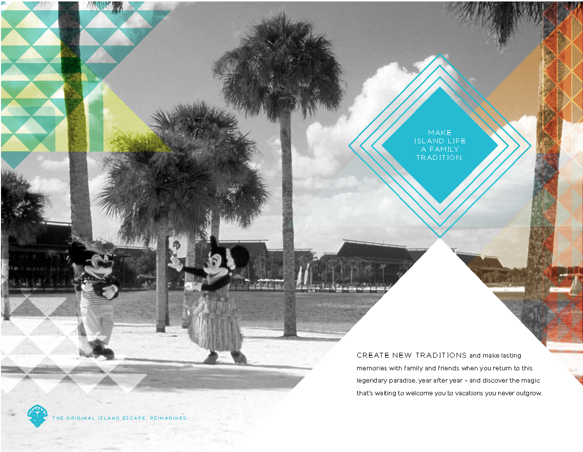 When working on the brochure for this new Disney property, it was fundamental to balance the heritage of the Resort with the excitement about the new features.