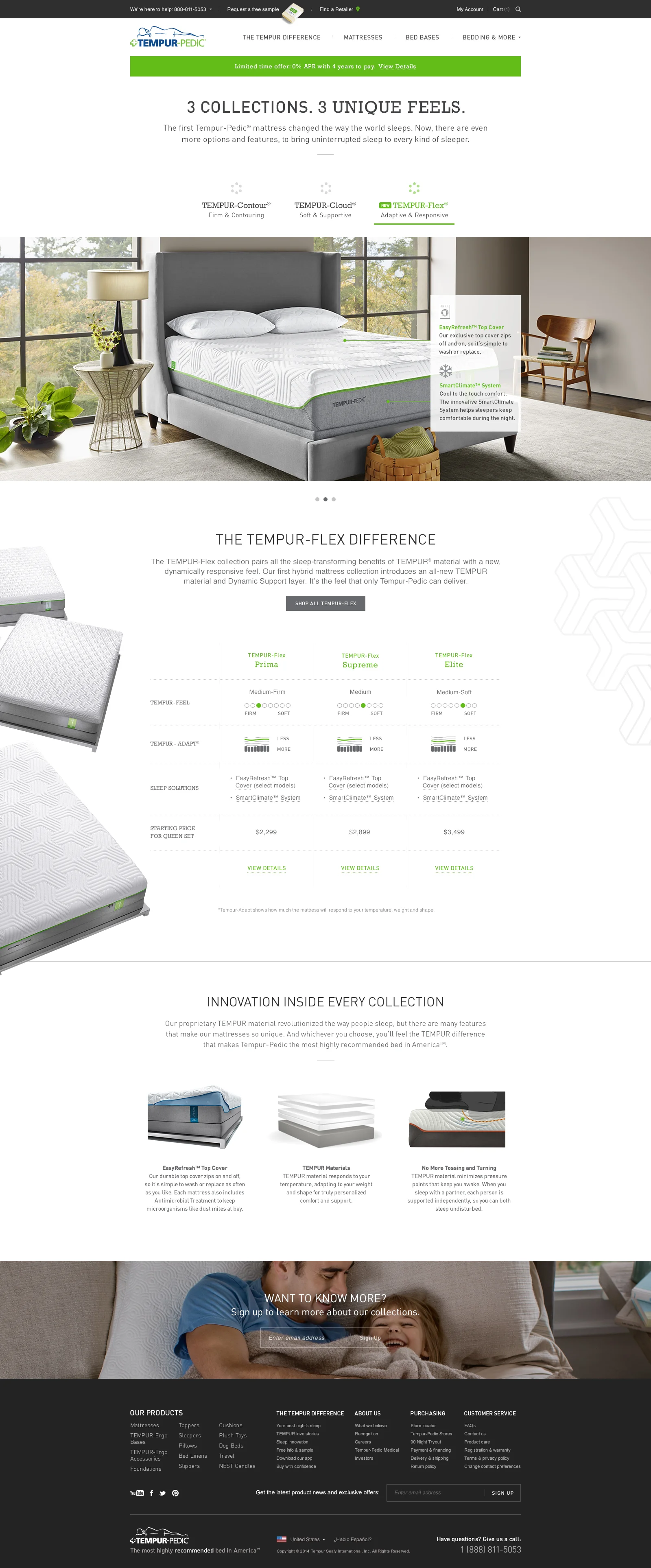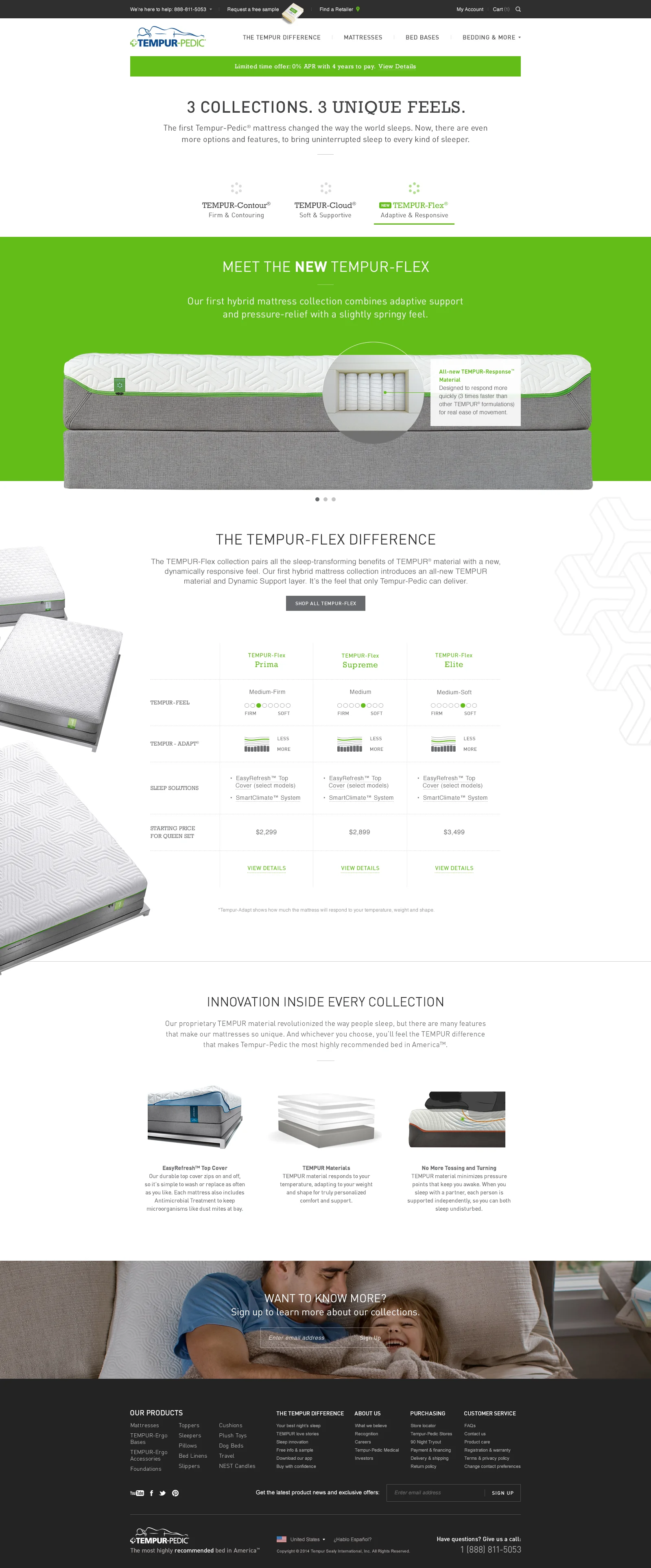 When Tempur-Pedic introduced TEMPUR-Flex to their line-up, we helped them to announce the new collection online. A comprehensive landing page helped customers to navigate their way to the right mattress, and a series of emails announced Flex in an exciting, eye-catching way.